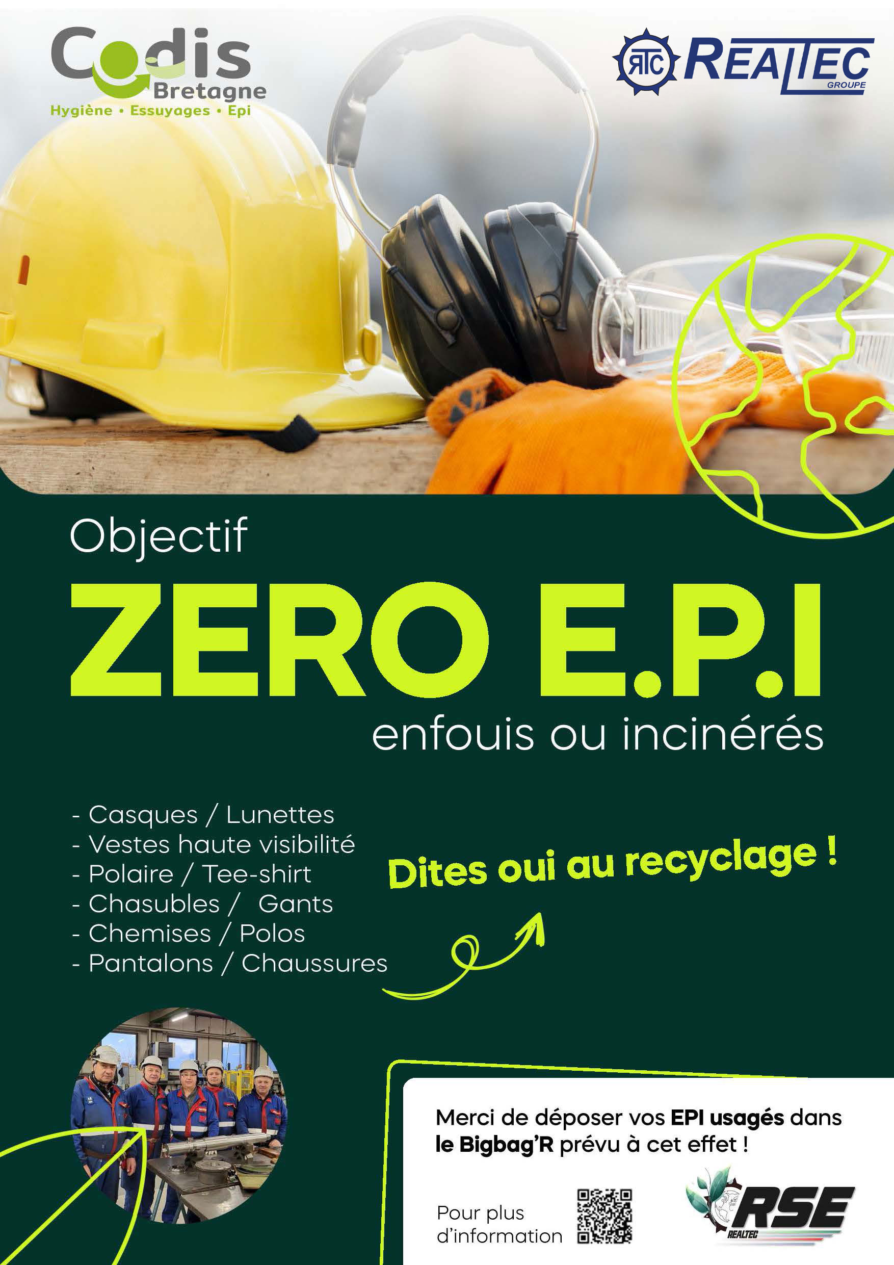 Dans une démarche toujours plus responsable et en cohérence avec nos engagements en matière de sécurité et d’environnement, REALTEC Groupe met en place une solution de recyclage des Équipements de Protection Individuelle (EPI).